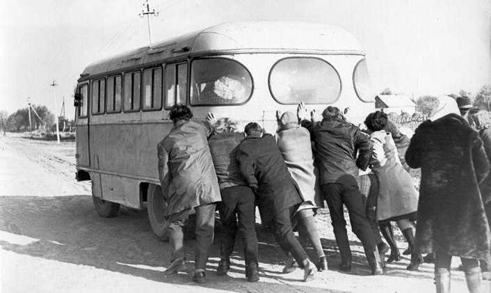 Автобус залізний, але часто й він не витримував постійних пересувних умов роботи.